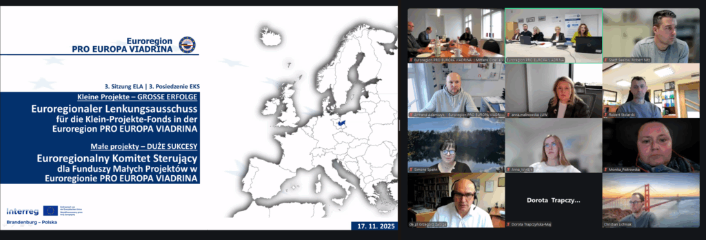Am 17.11.2025 fand im Online-Modus die mittlerweile 3. Sitzung des Euroregionalen Lenkungsausschusses (ELA) für die Kleinprojektefonds in der Euroregion PRO EUROPA VIADRINA statt.